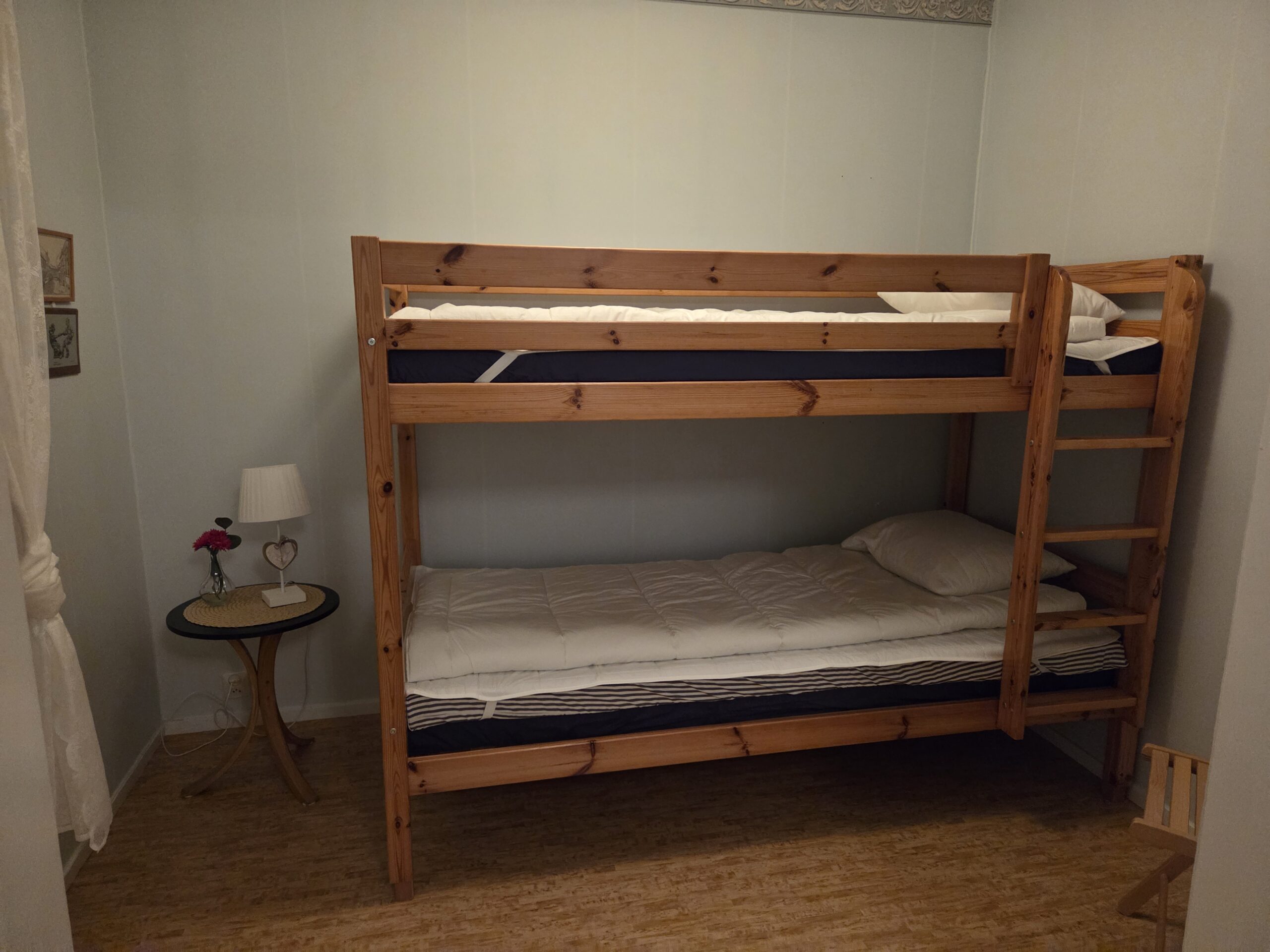 Sängar med täcke och kuddar ingår. Sängkläder och handdukar ingår ej.